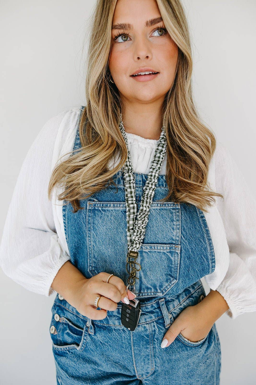 This lanyard is a must this season, featuring a dark forest green and white gingham pattern, it's perfect for anyone. Gone are the days of full hands with no pockets, our lanyards give you one less thing to worry about.