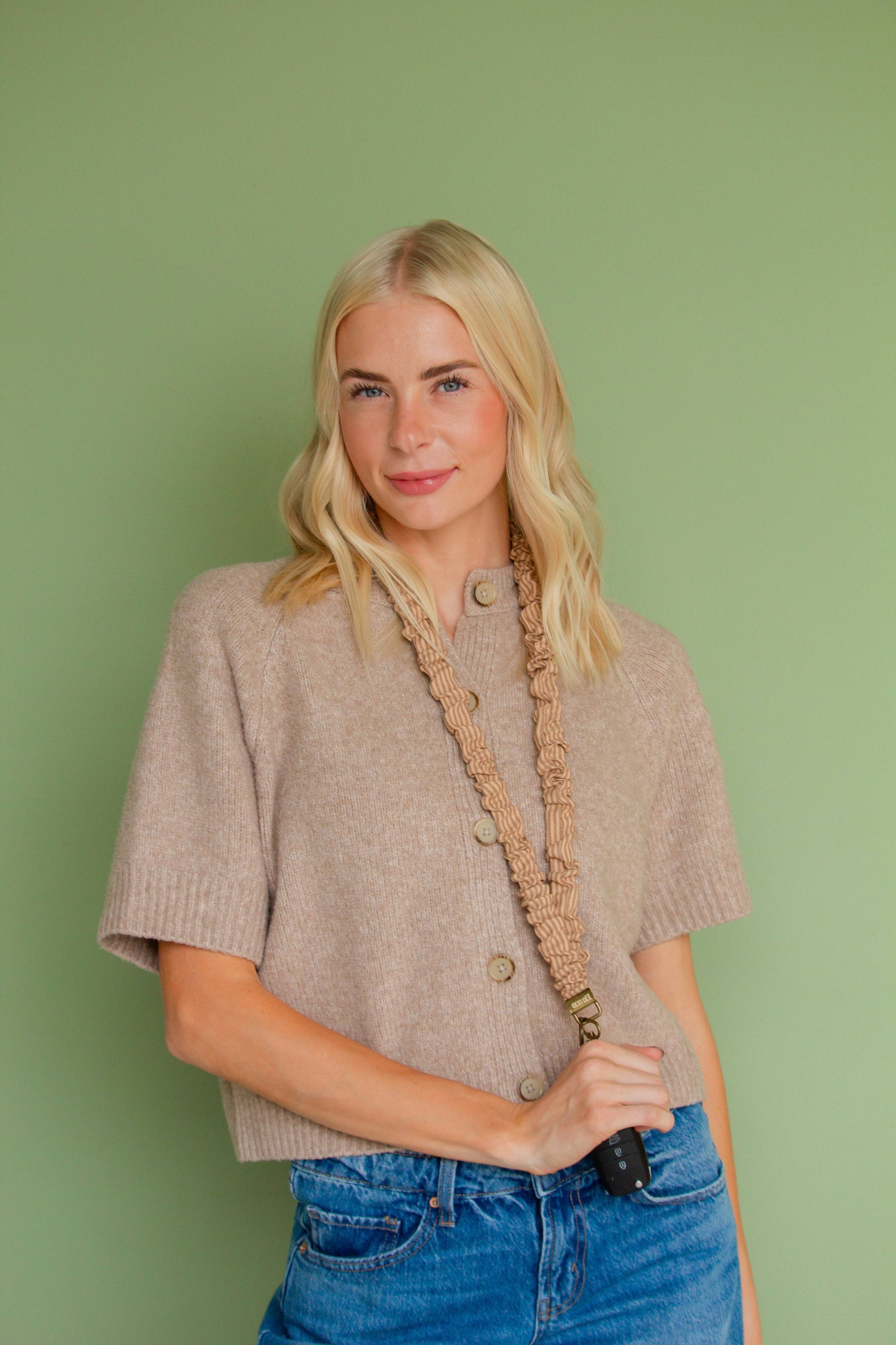 This lanyard is an absolute must have! The prettiest brown color combo in a nice, durable striped fabric. This one will be perfect for the fall season, you can't go wrong with it--it'll go with all your outfits this fall! Gone are the days of full hands with no pockets; our lanyards give you one less thing to worry about.