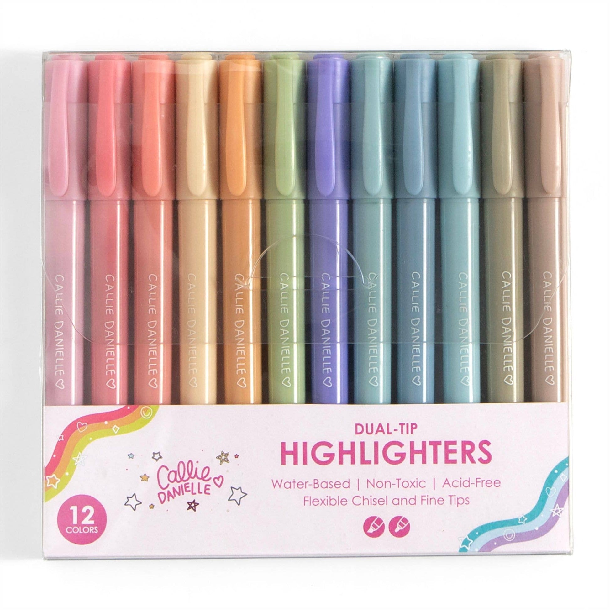 Brighten your notes with the Dual Tip Highlighter Set by Callie Danielle! This 12-pack of soft, pastel highlighters features dual tips—a flexible chisel for bold strokes and a fine tip for precise underlining or doodles. Water-based, non-toxic, and acid-free, they’re perfect for planners, notebooks, Bibles, or study guides without bleeding through. Whether you’re color-coding your calendar or adding flair to your journal, these pretty highlighters make it easy to stay organized and inspired. A fun and functional must-have for students, teachers, or stationery lovers!