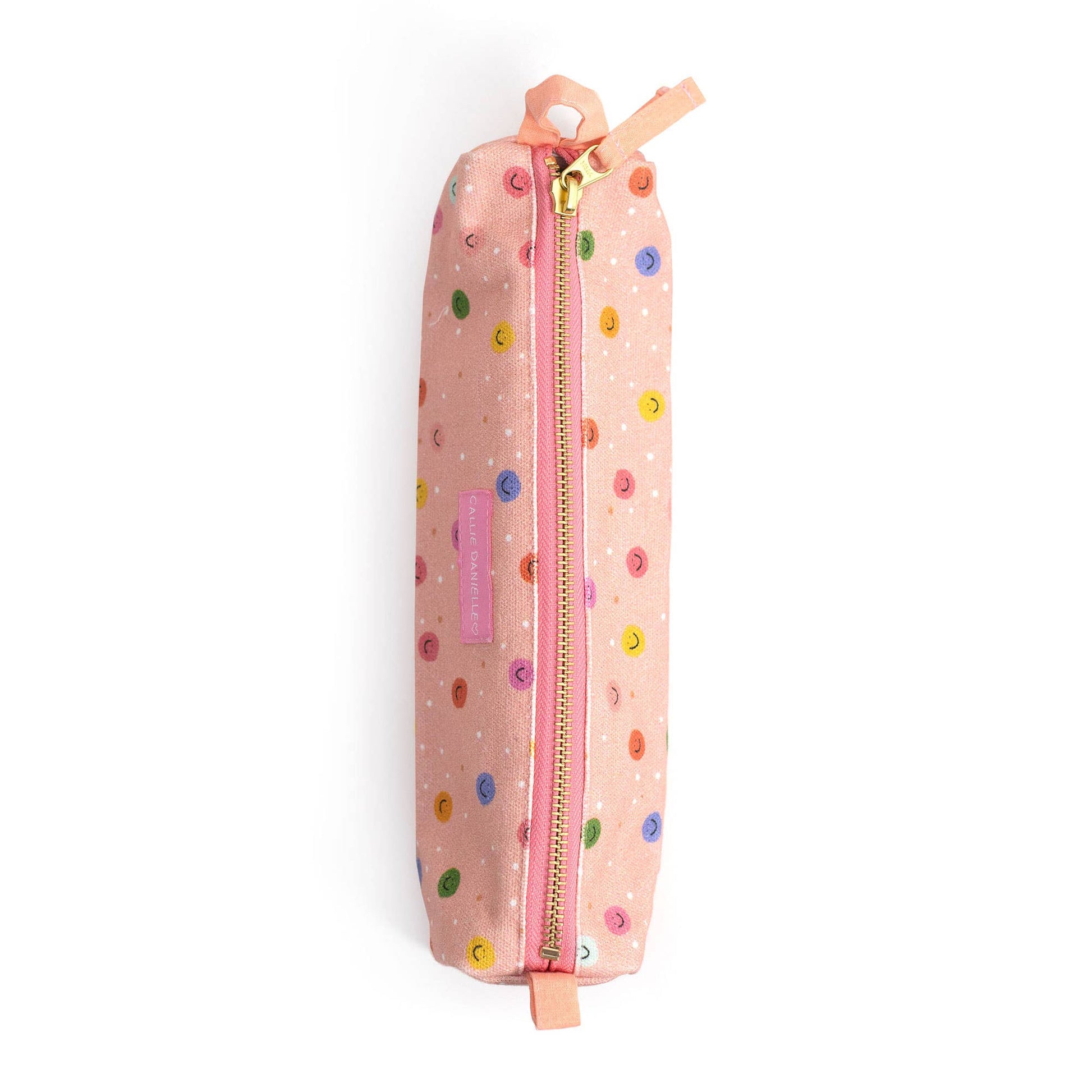 Add a touch of cheerful charm to your everyday essentials with the Happy Day Smiley Pencil Pouch. Perfectly designed to keep your pens, pencils, and small accessories organized, this delightful pencil pouch features a vibrant smiley face pattern that brings a burst of positivity to your school, office, or home workspace.
