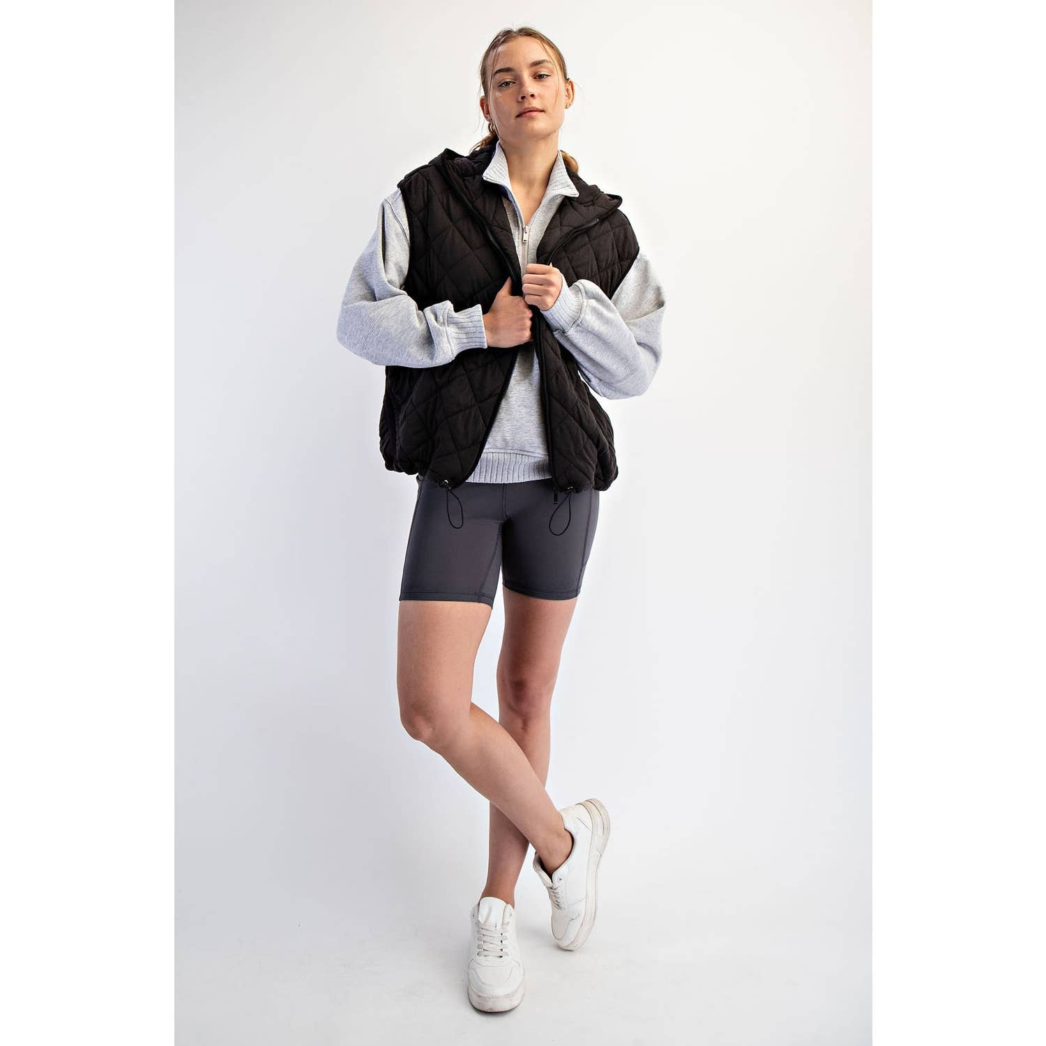 Stay cozy in style with this pillowy-soft quilted sleeveless hoodie vest. Designed with a relaxed, oversized fit, it features a cinched hem with adjustable stoppers for a customizable silhouette. Perfect for layering, this piece blends comfort and functionality with an effortlessly cool look.