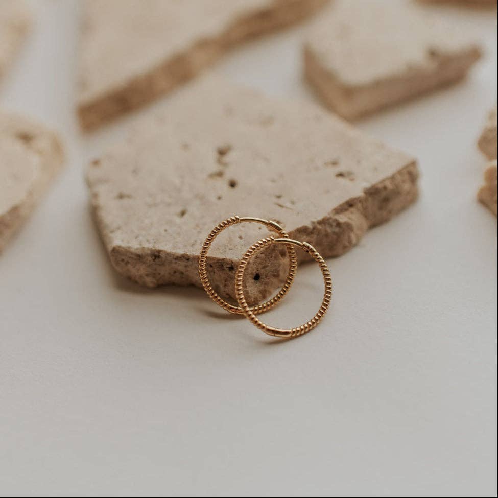 The Tessa Hoops are the cutest mid sized twist hoops to add to your collection! Featuring a dainty width with a larger circumference, these hoops are the perfect balance of subtle and statement. Featuring a huggie closure style for 24/7 comfort. Made from high quality, hypoallergenic gold vermeil. Hoops measure 18mm.